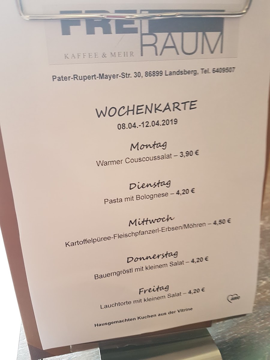 Café Freiraum sits quietly on Pater-Rupert-Mayer-Straße in Landsberg am Lech, offering a straightforward, community-focused spot for coffee and casual bites. This café leans into a no-frills atmosphere, with a modest interior that echoes a more traditional, slightly old-fashioned style, making it feel familiar rather than polished or trendy.